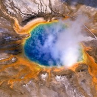 Le sorgenti calde sono decine di migliaia. Non esiste in nessun luogo al mondo una concentrazione simile. L’acqua che fuoriesce da molte di queste sorgenti è ricca di minerali a base di calcio, magnesio e silicati, che creano nei terreni attorno coni e terrazzi. L’esempio più famoso e impressionante di questo fenomeno è quello del Grand Prismatic Spring, la sorgente di acqua calda più grande degli Stati Uniti, che si contraddistingue per i suoi colori arcobaleno, straordinariamente nitidi e brillanti. Il Grand Prismatic Spring è situato all’interno di Yellowstone e deve questa sua atipica colorazione ai batteri pigmentati che crescono lungo i bordi delle sue acque ricche di minerali.