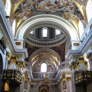 La cattedrale barocca, progettata da un pool di architetti italiani, tra i quali spicca Andrea Pozzo, architetto gesuita che ha disegnato la basilica. Non potendo seguire i lavori, la fabbrica è stata adattata da chi la gestiva operativamente. Infatti, la sommità dei campanili non era prevista dal Pozzo, ma fu aggiunta dal comasco Giulio Quaglio il giovane che decorò anche la volta, affrescandola.