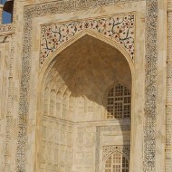 Oggi il Taj Mahal appare agli occhi del visitatore con il suo colore bianco latte come una splendida rosa bianca. Il sepolcro circondato da giardini bellissimi e da enormi fontane con percorsi fatti in marmo, contribuisce insieme alla moschea a creare un’atmosfera unica di pace e amore. Chiamato anche “Palazzo della Corona”, il Taj Mahal, sorge su una base di pietra arenaria rossa sormontata da un terrazzo di marmo bianco sul quale si posa la maestosa cupola affiancata da quattro minareti affusolati. La vicinanza al fiume permette un incredibile e quasi magico gioco di colore che cambia durante le ore del giorno e a seconda delle stagioni. Il Taj si mostra rosato al mattino, bianco latteo alla sera e d’oro quando la luna splende, grazie alle pietre preziose incastonate nel marmo bianco che con il bagliore dei raggi lunari scintillano. Questi cambi di colore in India, sembra quasi che vogliono rispecchiare la mutevolezza e quindi la volubilità dell’umore femminile.